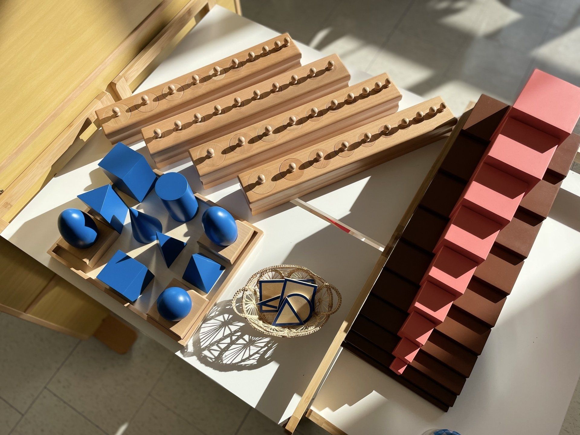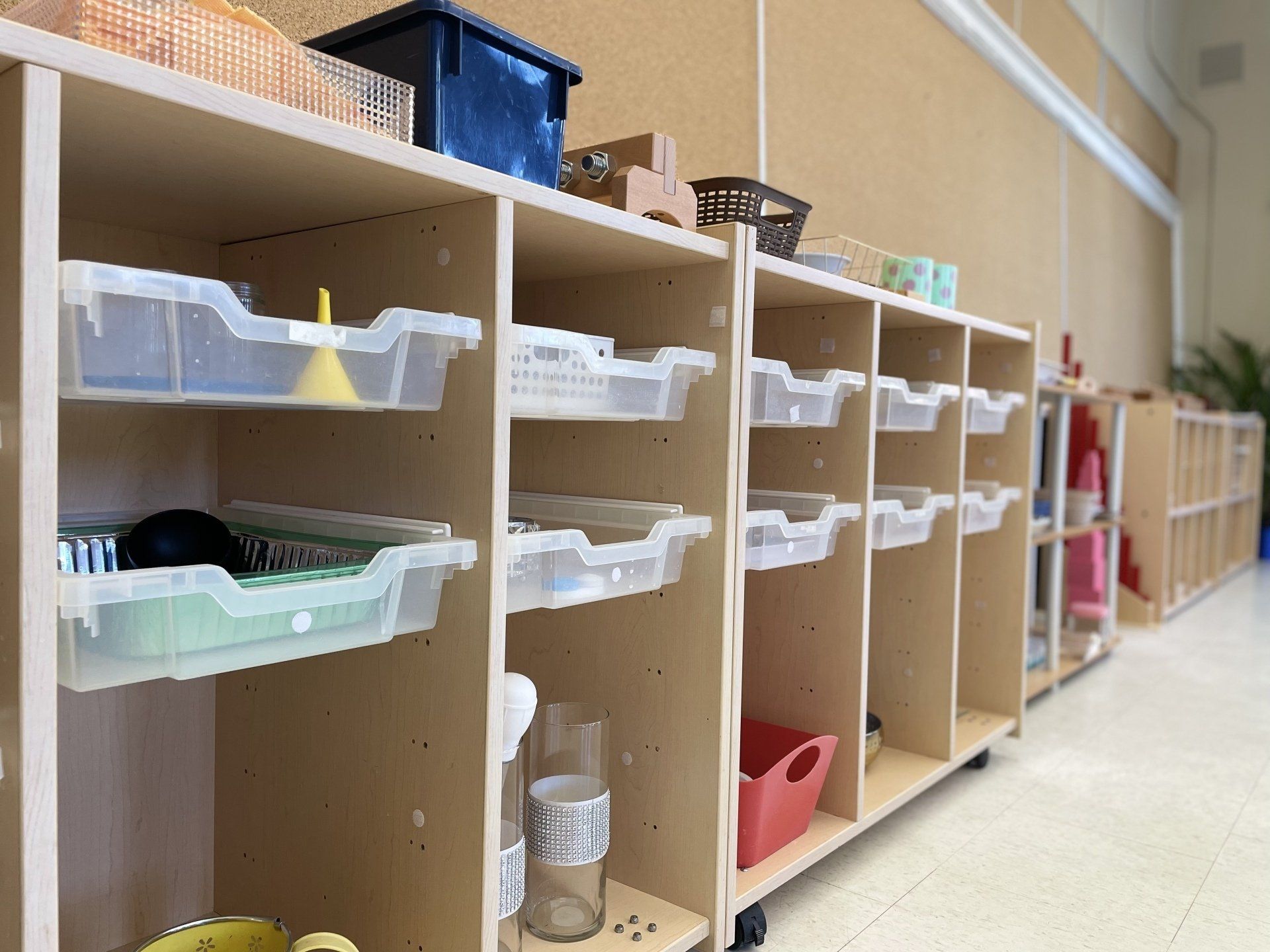 The Montessori classroom is a "prepared environment", meaning that the learning space is carefully cultivated by trained Montessori teachers to maximize learning opportunities through children's natural curiousity and desire to play. The Montessori approach is a child-led method, where the Montessori teacher's role is to simply provide the tools and"prepare the environment" for the child to learn.